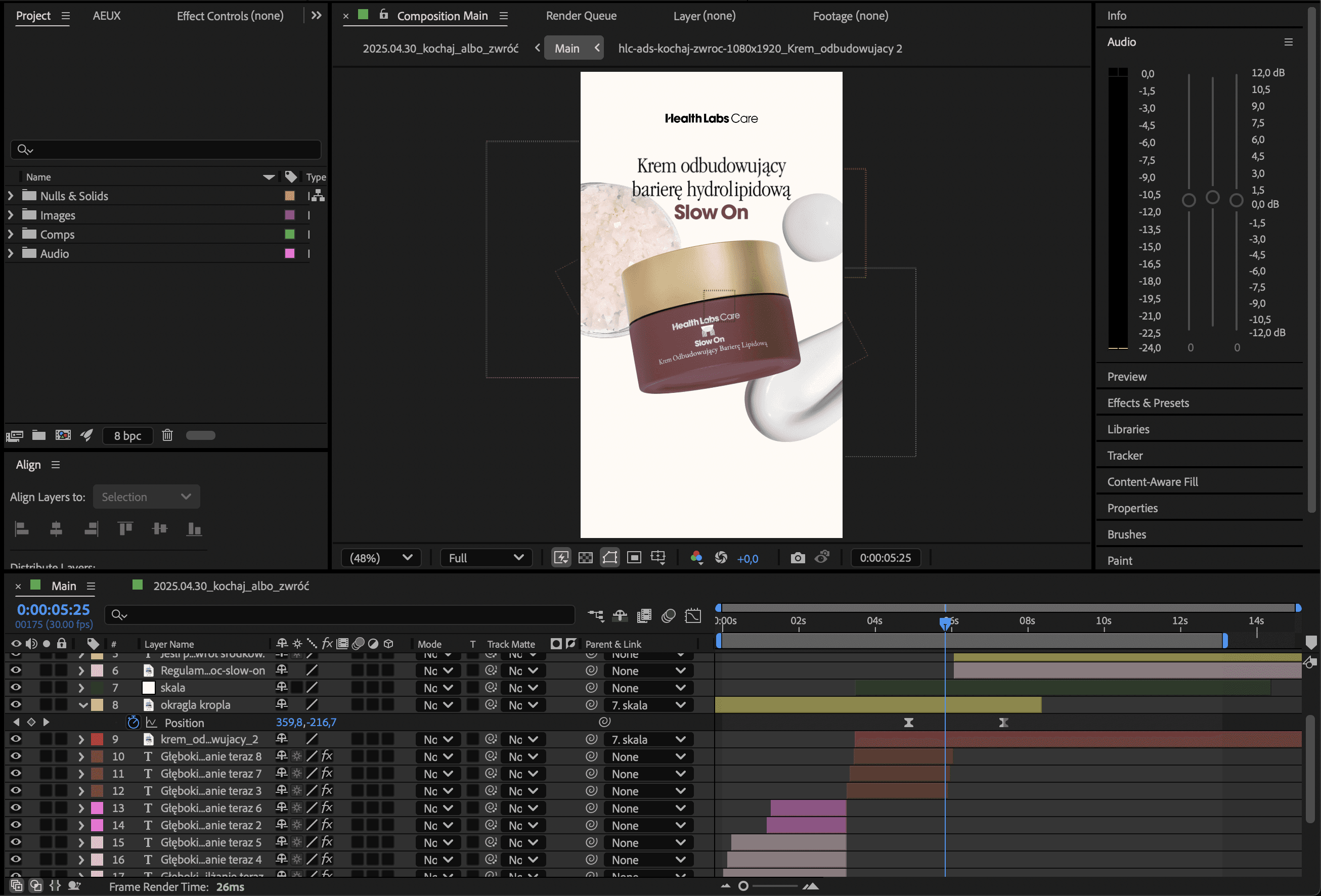 Od dwóch lat Dawid współtworzy komunikację jednej z najbardziej rozpoznawalnych marek suplementów w Polsce. Jako motion designer, montażysta i współtwórca pomysłów odpowiada za animacje produktowe, kampanie reklamowe i video adsy, które trafiają do milionów odbiorców. Od pierwszych szkiców po postprodukcję. Dawid rozwija unikalny styl animacyjny, który z czasem stał się znakiem rozpoznawczym Health Labs Care. Współpraca obejmuje tworzenie contentu do social mediów, dynamicznych reklam wideo, montaż spotów oraz udział w opracowaniu koncepcji i skryptów. Zespół kreatywny HLC może na niego liczyć na każdym etapie produkcji – od pomysłu do ostatniej klatki.